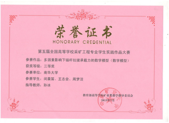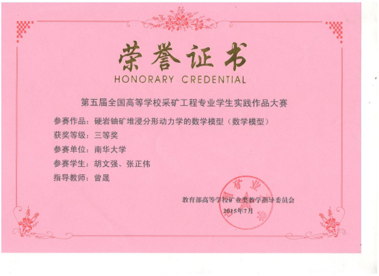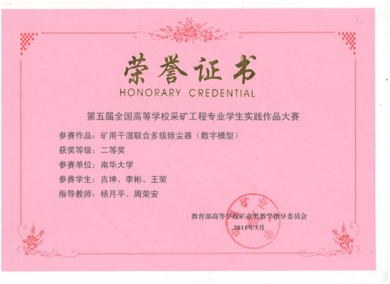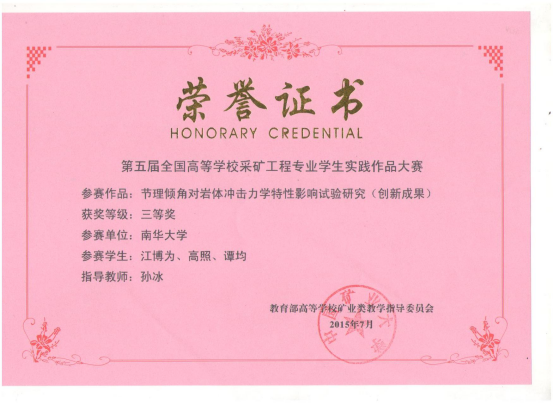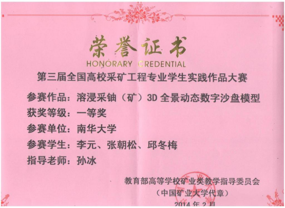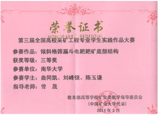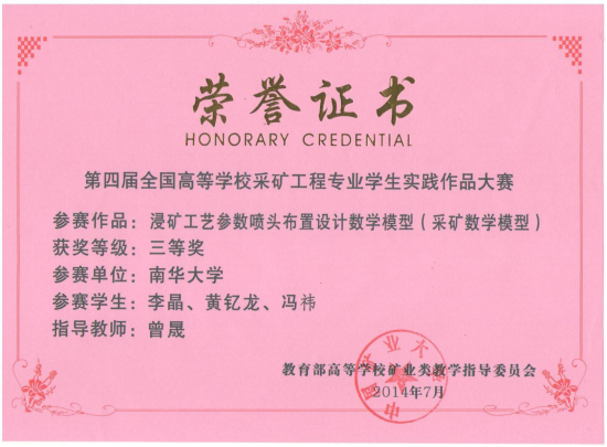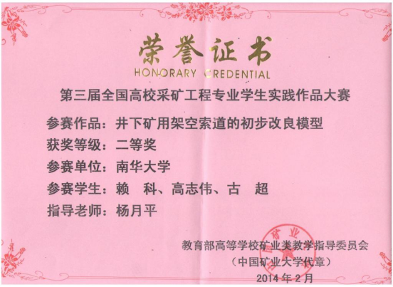 上一条:资源环境与安全工程学院2014级本科毕业生考研情况 下一条:学生获奖证书