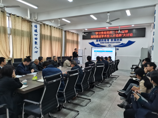 2023年3月6日上午9点,资源环境与安全工程学院在新二教A305会议室开展了以“学习贯彻党的二十大精神 加快推进学术型人才培养”为主题的大讨论。讨论会由院长张志军主持。全体院领导、系(中心)主任、副主任、教师党支部书记、副书记、全体教务室人员以及全体辅导员参加了本次讨论会,审核评估领导小组常务副组长刘泽华参加了会议并作了题为“审核评估与学术型人才培养若干思考”的报告。
