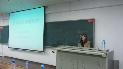 陈老师用通俗易懂的话语与大家亲切地交流,使大家在整场讲座中都受益匪浅。陈老师建议,我们必须把“要我写”的态度改为“我要写”,加强基本训练,通过熟读、常写、勤思培养文体感和辩证的题材观。最后,屈慧琼老师上台作出总结。她说:“新闻写作是一件不容易的事情,同学们要不断训练,加强写作中各方面的素质,让我们核资源学院在宣传工作中更上一个台阶。”
