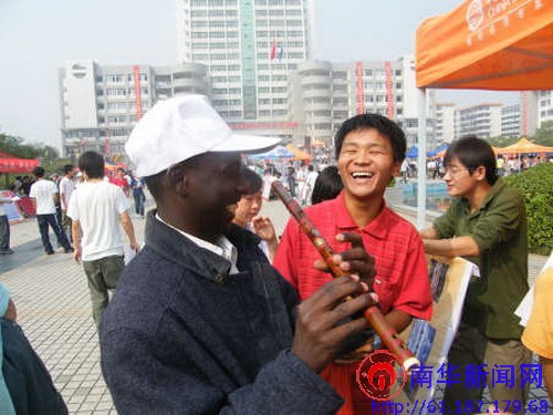 10月18日早,核资源与安全工程学院记者团工作人员如约来到华天之星酒店。刚进酒店,几位非洲友人便和记者们亲密的握起手来,他们友好的行为一下子将现场的紧张气氛变得轻松起来。在接下来的交谈中,记者问他们对我校校庆的感觉如何,他们都拍手称赞,尤其对校庆焰火晚会更是给予了高度评价。随后,核资源与安全工程学院的记者们带领他们参观我校,参观当天,恰逢我校各社团招新,所以南华广场人声鼎沸,非洲友人也对我校的社团文化表现出了极高的热情,尤其是对武术协会和笛箫协会更是情有独钟,并表示如果有机会一定学习中国功夫。最后,记者们将他们送回酒店。在即将告别时,他们还表示,希望可以多结交一些中国朋友,真正的了解中国的文化。