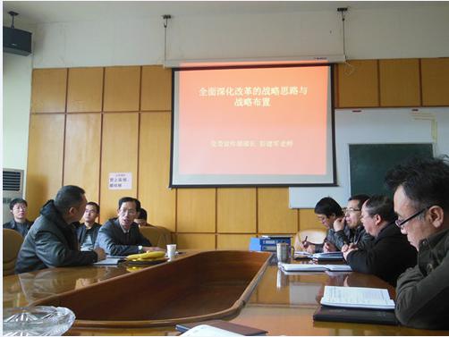 首先,廖碧波书记对彭建军部长莅临学院进行宣讲表示了欢迎和感谢,同时明确了全院师生员工学习十八届三中全会精神的重要性,并对学院学习、宣传、贯彻党的十八届三中全会精神作出了相关要求。