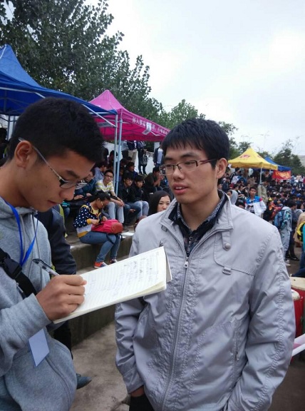 南华大学2014大运会于10月31日开幕。各项赛事紧张进行着。上午十时许,在核资源工程学院看台上,我院记者采访了冒雨与学生同在看台观赛的新生辅导员李峰老师。