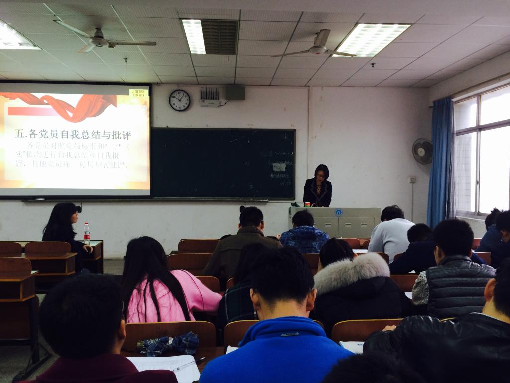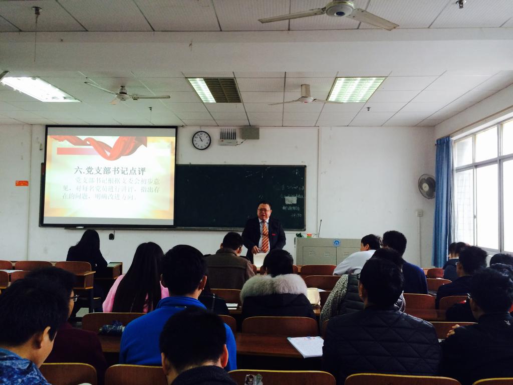 最后,肖书记和杨婷老师对本次“三严三实”专题组织生活会大会分别做了点评和总结。肖书记总结到,党支部所有党员要严格按照中央的要求,积极开展“两学一做”专题教育,深入学习贯彻习近平总书记系列重要讲话精神,巩固拓展党的群众路线教育实践活动和“三严三实”专题教育成果,发扬共产党员的先进性和纯洁性。杨婷老师鼓舞各位党员,要进一步增强政治意识、大局意识、核心意识、看齐意识,坚定理想信念、保持对党忠诚、树立清风正气、勇于担当作为,充分发挥先锋模范作用。争当楷模,为院争光,为校争光。