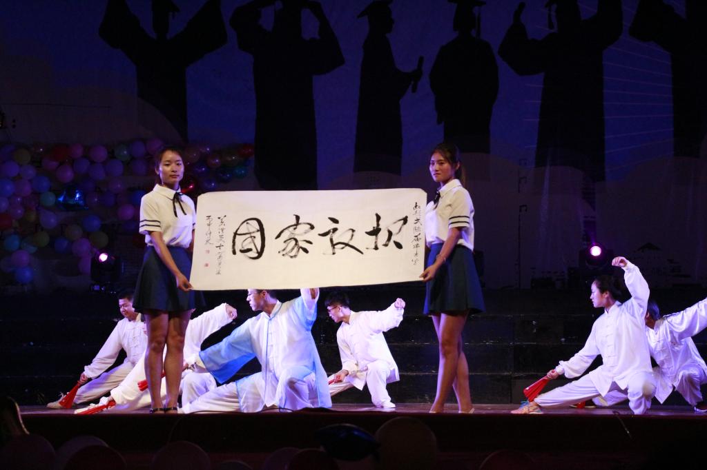 随后,院党委副书记肖月生老师上台为毕业生题字祝福,以“报效祖国”四字表达了对毕业生的衷心祝福和殷切希望。