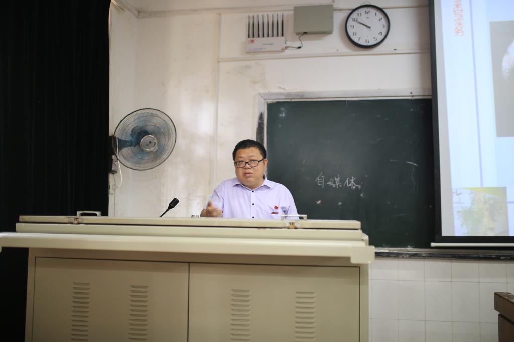 肖书记曾为宣传工作奉献了十年的心血,在发掘新闻及采写技巧上有极高的造诣和独特的见解。从记者的基本素质修养到新闻的写作技巧,他用一个多小时的时间将自己多年的宝贵经验传承给了在座的新生们。语言诙谐而富有内涵,恰到好处地调动了新生们的积极性,燃起了新生们对新闻培训的兴趣,也收获了同学们由衷的热烈的掌声。