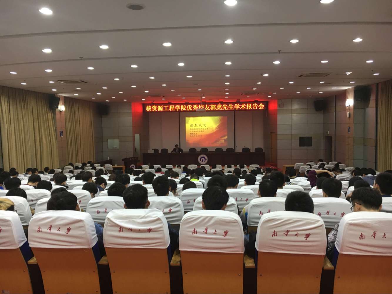 11月16日晚,核资源工程学院优秀校友、浙江通球集团董事局主席、三力集团董事长、高级工程师郭虎先生在学校图书馆学术报告厅为学院同学做学术报告。出席此次报告会的有学院院长李广悦教授及院学工室郑宇、杨婷、冯旭老师。本次报告会由李广悦教授主持。