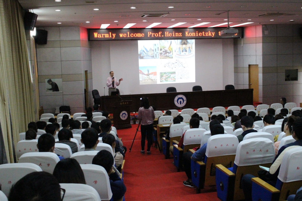 2018年3月16日上午9:00,在南华大学图书馆一楼学术报告厅举办了采矿工程岩石力学及数值模拟前沿问题学术报告讲座,德国弗莱贝格工业大学Heinz Konietzky教授担任主讲。丁德馨教授主持讲座,参加讲座的有核资源工程学院院长李广悦教授、副院长贺桂成副教授以及学院其他领导、老师、研究生与学生共300余名。