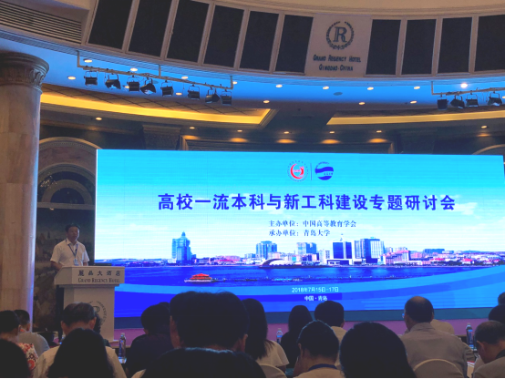 由中国高等教育学会主办、青岛大学承办的“高校一流本科与新工科建设专题研讨会”于7月15日-17日在青岛举行。来自全国高校的主管教学校(院)长、教务处、发展规划处、高教研究所、二级学院等单位负责人及管理人员等四百余人参加了本次研讨会。我院教师桂荣、伍玲玲、刘建东、戴兵参加了本次会议。