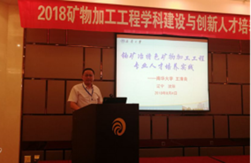 由教育部高等学校矿业类专业教学指导委员会和中国高校矿物加工工程专业协同合作联盟主办,东北大学、辽宁科技大学、辽宁工程技术大学和黑龙江科技大学承办的“矿物加工工程学科建设与专业创新人才培养研讨会”和“第三届全国高等学校矿物加工工程专业学生实践作品大赛”相继于2018年8月4日和5日分别在东北大学和辽宁科技大学国际学术交流中心召开。包括中南大学、中国矿业大学、东北大学、南华大学等全国32所高等院校130余名矿物加工工程学科专家学者参会。我校科技处副处长王清良教授,矿物加工系主任史文革教授等5人参加会议,王清良教授围绕我校矿物加工专业发展情况及铀矿冶特色作了专题报告。