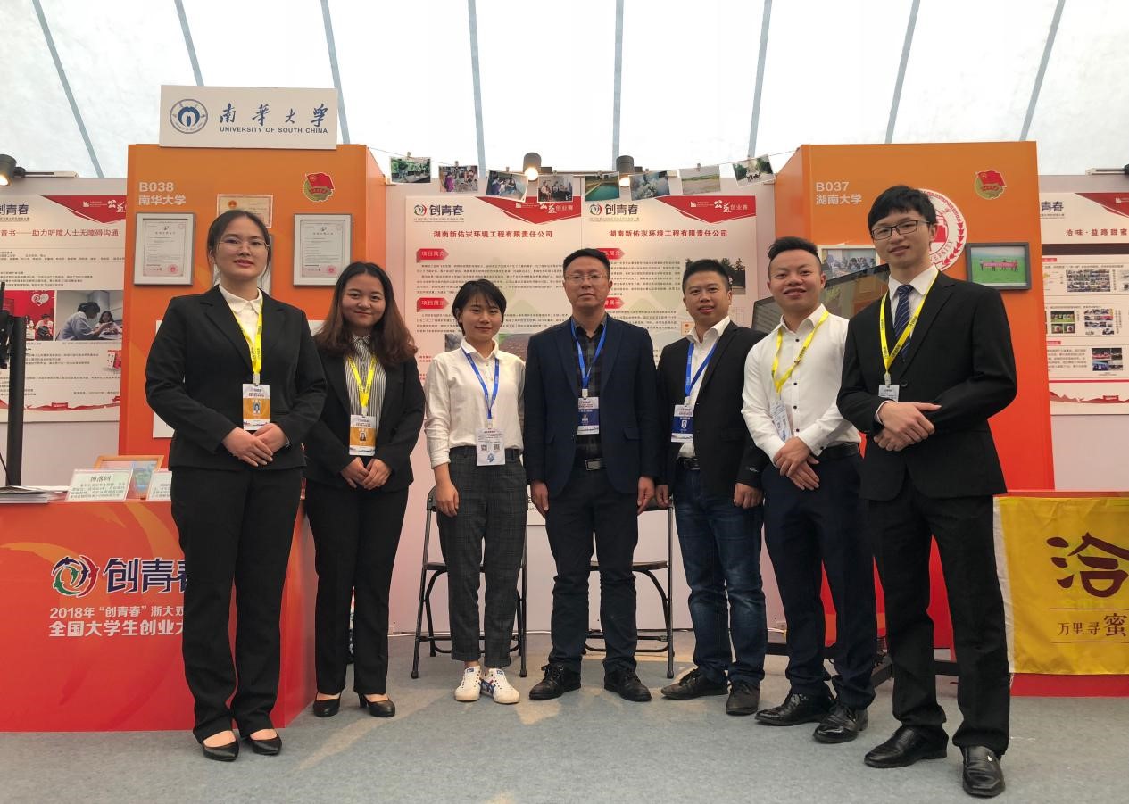 2018年11月3日,由共青团中央、教育部、人力资源社会保障部、中国科协、全国学联、浙江省人民政府共同主办的2018年“创青春”浙大双创杯全国大学生创业大赛终审决赛在浙江大学落下帷幕。我院桂荣、胡南老师指导的参赛项目“湖南新佑汖环境工程有限责任公司”从来自2200余所高校的15万余件参赛作品中脱颖而出,喜获国赛银奖,创造了我校近十年来在该项赛事中所获得的最佳成绩!