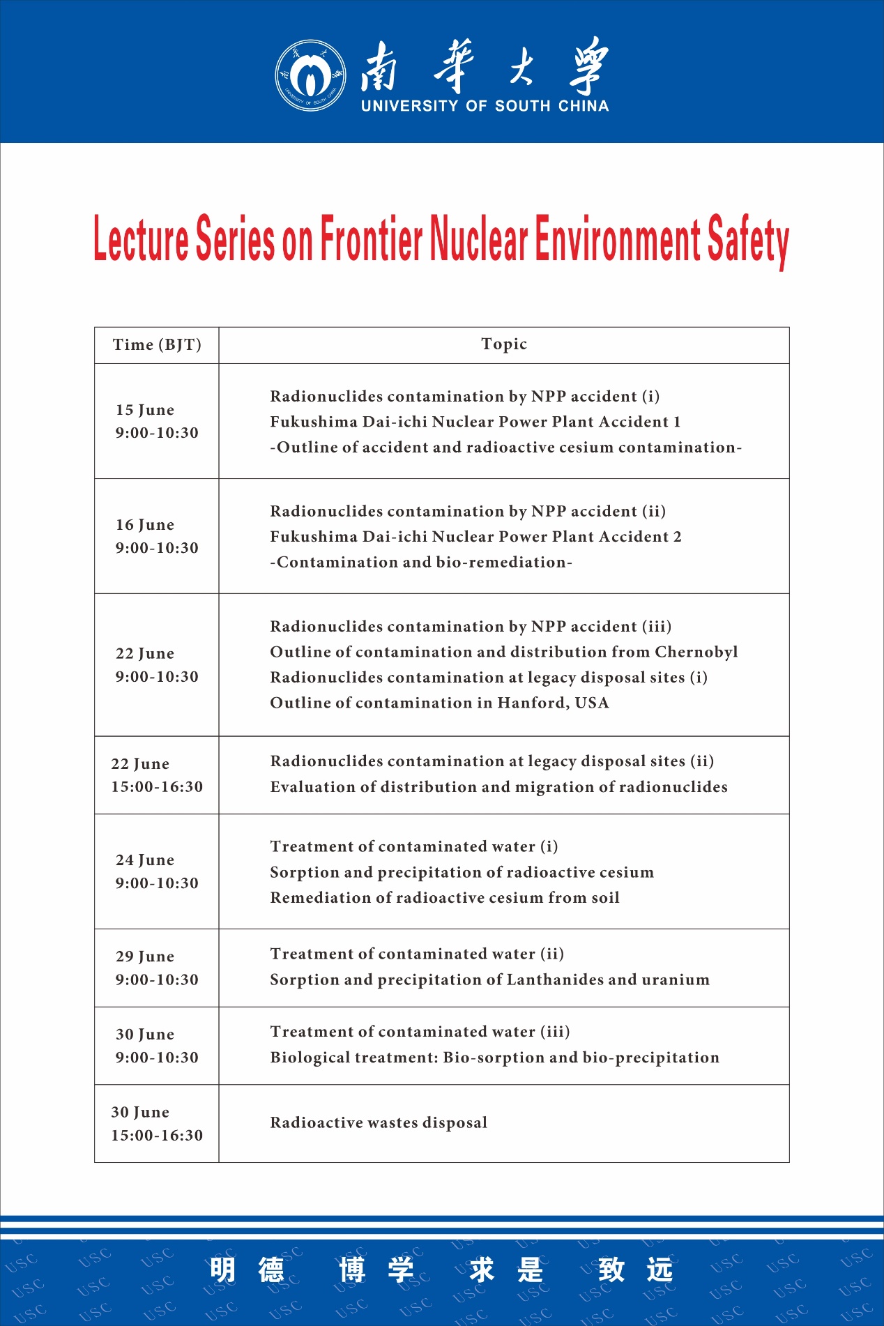 9时10分,讲座准时开讲。该系列讲座主要聚焦核素的污染及其治理。主要内容有:日本福岛第一核电站事故、切尔诺贝利核电站事故及其引发的污染与治理;美国的核污染与治理;水中(含地下水)的核素污染、迁移转化及修复技术;固体核废料的处置、污染、及修复技术等。