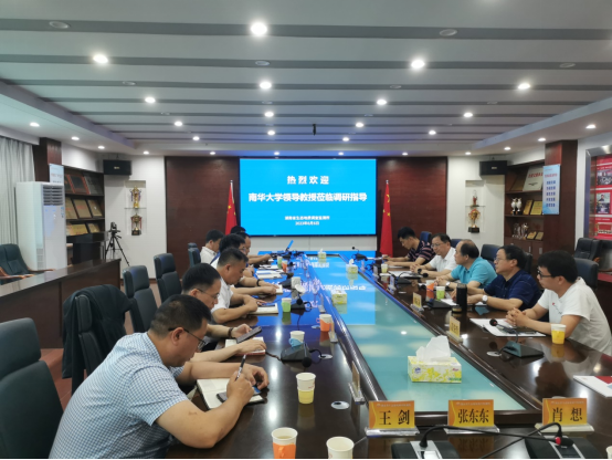 2023年6月6日,南华大学资源环境与安全工程学院副院长王清良、稀有金属矿产开发与废物地质处置技术湖南省重点实验室主任唐振平、南华大学土木工程学院教授熊正为、资源勘查工程系主任段先哲及副主任韩世礼一行到湖南省生态地质调查监测所调研交流。所长于辉胜主持召开座谈会,副所长罗忠行、副所长曾蔚及相关部门负责人参与调研交流活动。