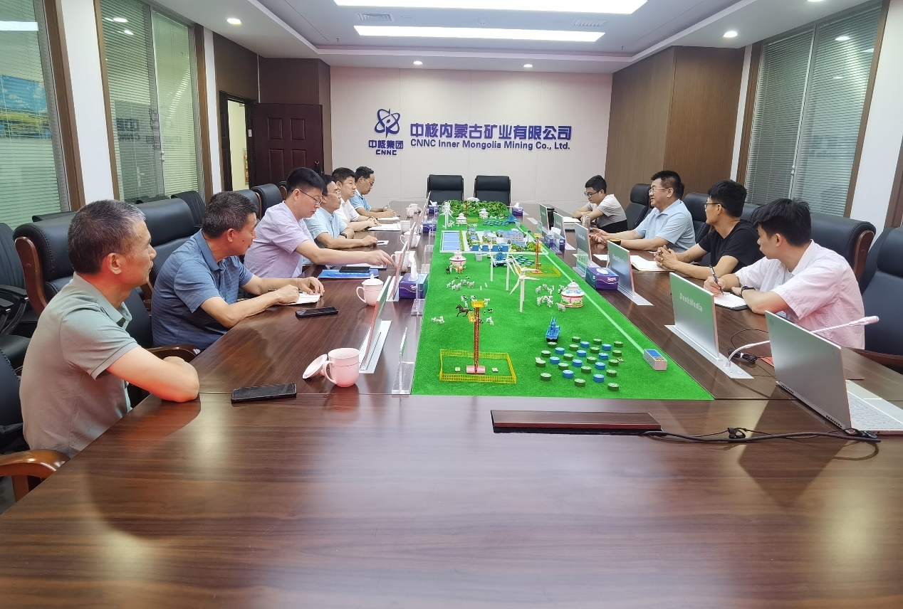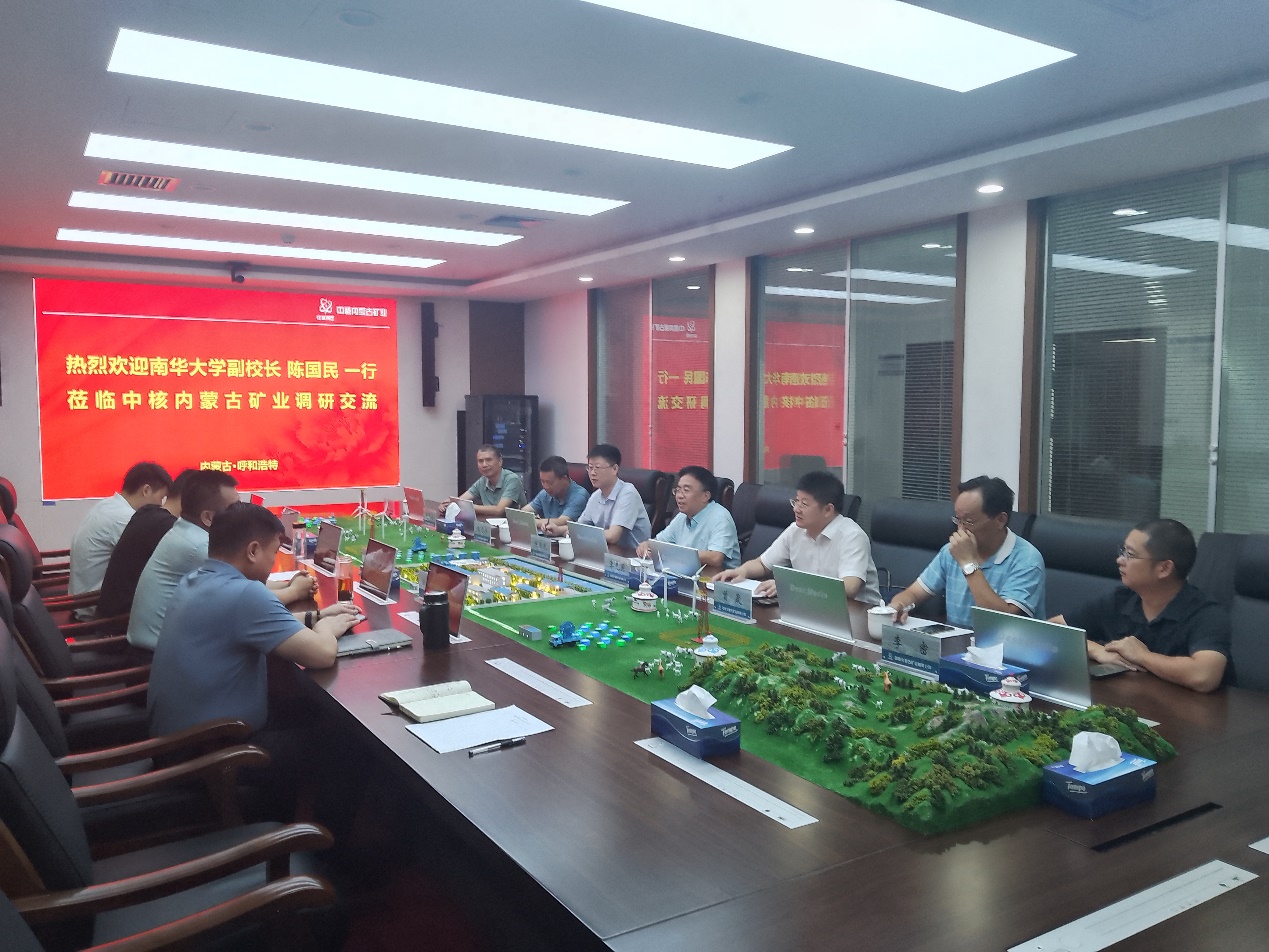 2023年7月20日,南华大学副校长陈国民、教育发展与校友联络办主任李先国、资源环境与安全工程学院院长张志军、副院长戴剑勇、矿物资源工程系主任曾晟、环境科学与工程系教授张晓文、李密一行到中核内蒙古矿业有限公司调研交流。总经理阳奕汉主持召开座谈会,副总经理姚光怀、处长张传飞及相关部门负责人参与调研交流活动。