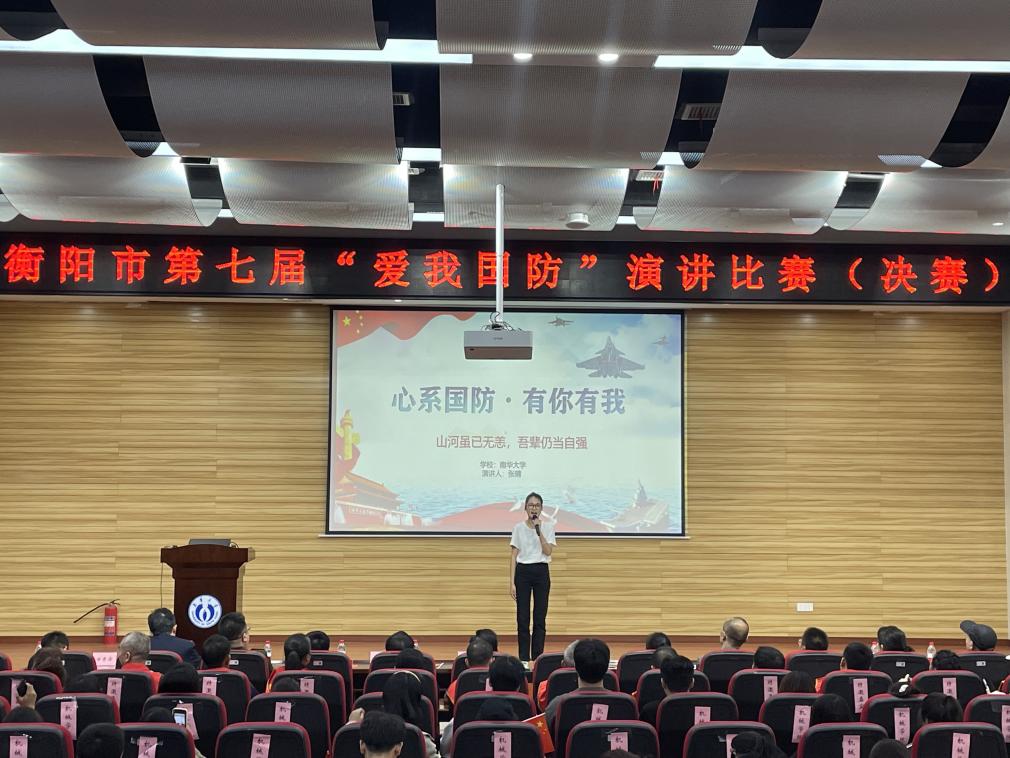 近日,由中共衡阳市委宣传部、衡阳警备区政治工作处、衡阳市教育局、共青团衡阳市委主办,南华大学承办的衡阳市第七届“爱我国防”演讲比赛落下帷幕。来自全市党政机关干部、企事业单位职工、大中小学生、退役军人、民兵预备役人员等共13名选手经过层层选拔,上演振奋人心的演讲。我院2023级资源勘察工程专业学生张晴以校赛第一名的成绩代表学校参赛,获市决赛三等奖,赵玥获“优秀指导教师”称号。