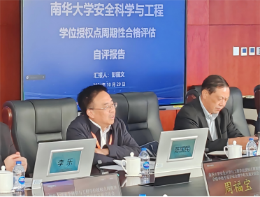 南华大学党委委员、副校长陈国民,原国务院学位委员会安全科学与工程学科评议组成员、南华大学原党委书记邹树梁,研究生院院长李乐,安全科学与工程学位授权点负责人、教务部部长彭国文,资源环境与安全工程学院院长张志军、学院教授韦昌富、安全科学与工程系主任郭倩、副主任易远,经济管理与法学学院院长李玉琼、副院长李冬生参加会议。会议第一阶段由张志军院长主持,第二阶段由专家组组长周福宝院长主持。
