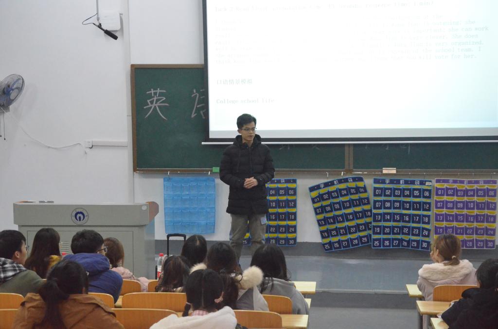 本次英语技能大赛初赛形式为笔试,意在测验参赛者的阅读能力和写作能力。初赛时,各参赛者遵循考试纪律和要求,全场安静,答题认真,并选出笔试优胜者共二十三名同学进入决赛。决赛阶段为口语测试,由英语脱口秀、段落速读两部分组成,目的是考核各参赛者的口语应变能力。比赛现场,各参赛者认真聆听其他参赛者的演讲并积极参与互动。经过评委打分,最终张月华荣获一等奖,韩璐、肖承娟荣获二等奖,余俊伟、裴耀武、赵泽瑜荣获三等奖。本次大赛一二等奖的同学将代表学院参加校级英语技能大赛。