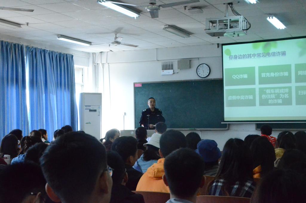 11月14日上午,资源环境与安全工程学院于南华大学红湘校区一教209召开“大学生如何防范电信诈骗”讲座,特邀南华大学保卫处宋建业老师主讲,我院党委副书记李照主持。辅导员老师杨婷以及我院全体研究生参加本次讲座。