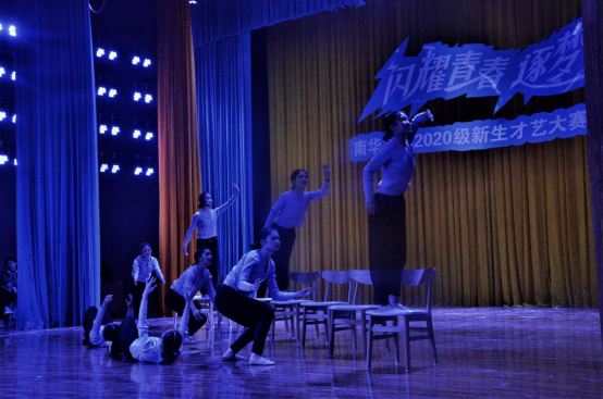 11月28日晚,南华大学2020新生才艺大赛决赛在红湘校区隆重举行。资环安学院的舞蹈《我等你》大轴出场,以一男一女两位主舞的肢体语言向我们演绎了战争时期“男儿上战场,女子待君归”的动人场景:坐在座椅上翘首以盼,是丈夫在外时女子独自在家的不安与痛苦;男女相拥、热舞,是丈夫归来时两人相见的快乐与欢脱、眼底的柔波和手与手的遥相呼应,是短暂温存后再次分别的留恋与不舍。主舞走到幕后,一位位群舞走上来,一幕幕相似的场景,传达了每一位铁骨铮铮的军人背后无私奉献的军嫂日复一日的期盼,又表现了在山河破碎中的无数人民对和平的渴望。