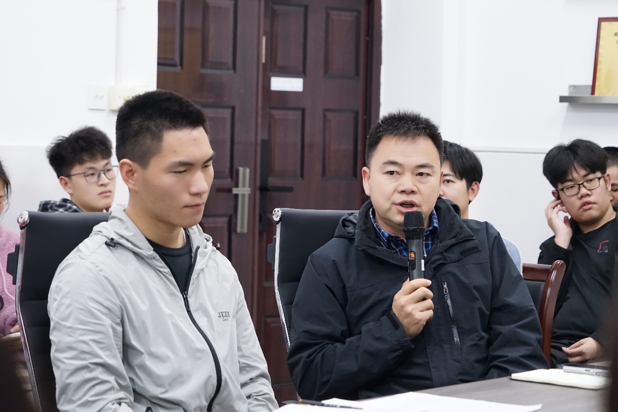 最后由院党委副书记田生军进行总结发言,田书记先是对叶坚老师组织这次主题班会给予肯定,对环境专业同学们表现的十分满意。之后一连串的提问同学们,听完退伍同学的发言是否对军旅生活产生敬畏?是否有一个明确的目标?是否有参军入伍的想法?他呼吁我们要树立远大的理想,走在时代的前列,年轻人要有胆量,不畏艰难,从今以后要更加严格的要求自己。