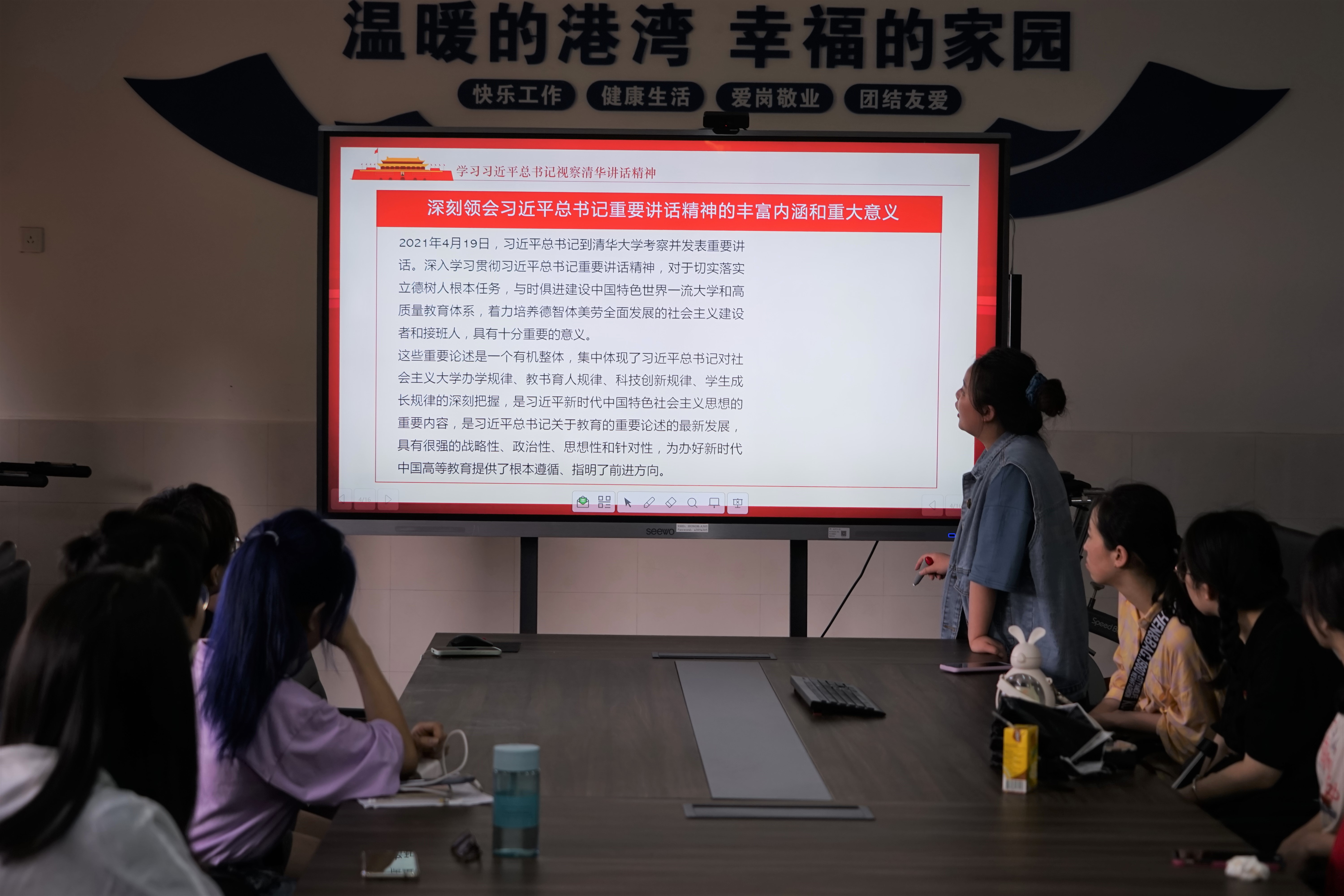 在宣誓和唱团歌之后,团支书上台进行总结:时代不一样,但中国青年一样。我们应该为了这个社会、这个国家、这个时代,心存信念、不断前行。