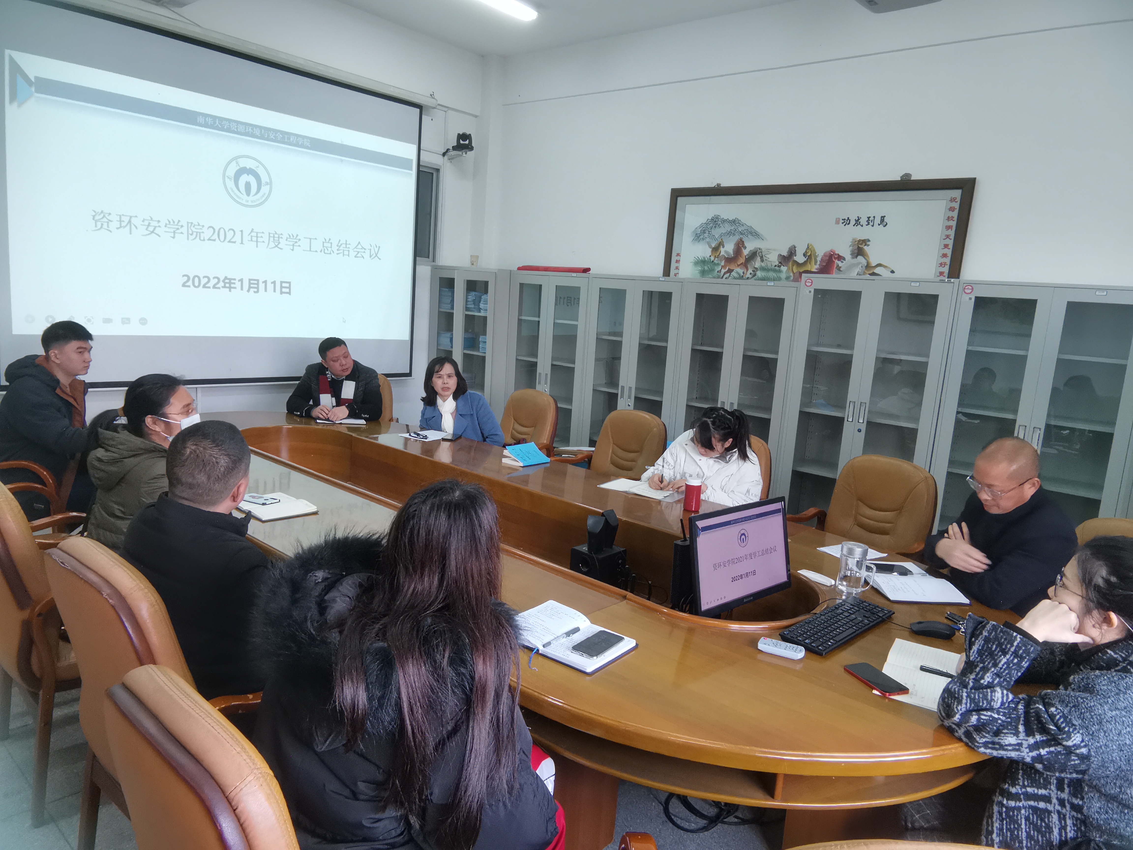 最后,曾志伟进行了总结。他充分肯定了各位老师在2021年度完成的各项工作,同时指出工作中存在的问题,并对大家提出了几点希望,概括起来就是“112244”:一、树牢“1”个意识,那就是全心全意为培养学生服好务;二、把握“1”个抓手:建设好特色成长辅导室,发挥好其功能和作用;三、打造“2”个品牌:做好双创工作坊和铀矿冶文化研究会的建设,吸引更多同学参与双创工作,培养自己的创新创业能力,让更多的同学开展铀矿冶文化研究,了解铀矿冶文化,热爱铀矿冶文化,从而热爱自己的专业;四、培养“2”种能力:要培养辅导员的学习能力和业务能力,从而更好地开展工作;五、开拓“4”个局面:营造良好的学风、班风、寝风,加强党员的教育和管理;六、建设“4”支队伍:要加强对辅导员队伍、班主任队伍、学生干部队伍、学生党员队伍的建设,充分发挥好每支队伍的主观能动性。希望在大家共同的努力下,2022年开创资环安学院学生工作新辉煌。