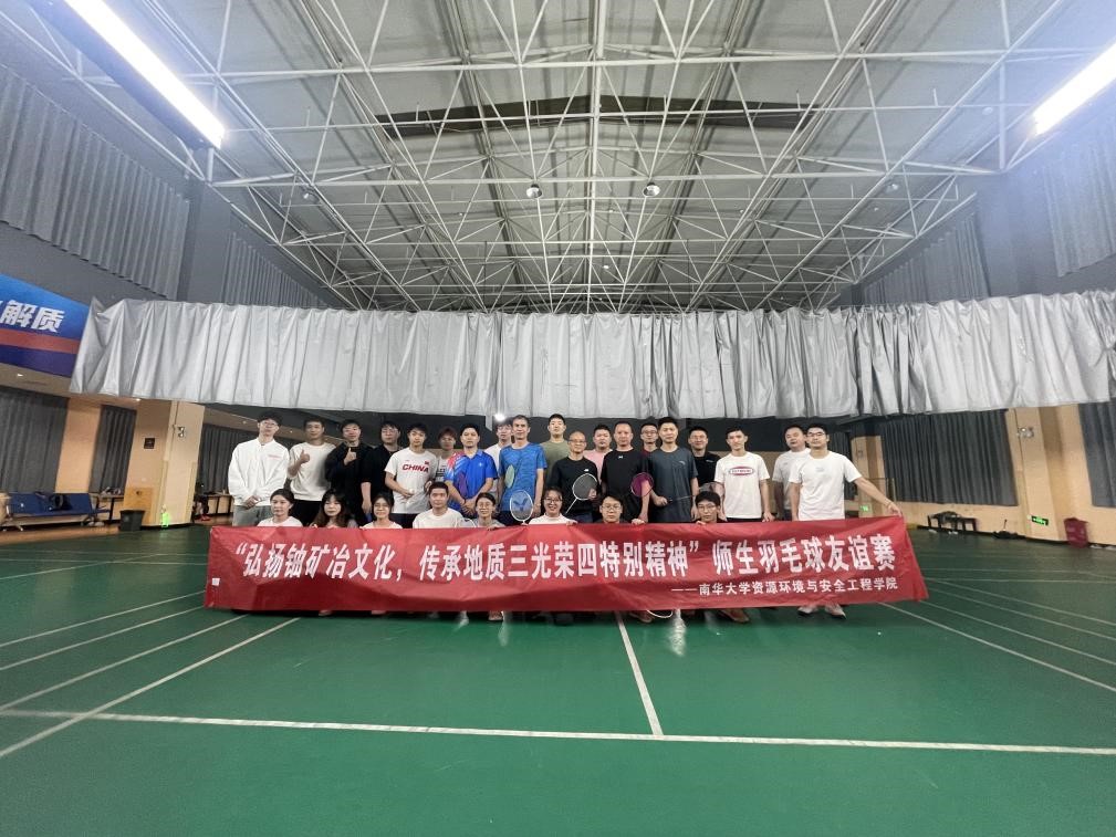 2023年11月8日下午,资源环境与安全工程学院在五环羽毛球馆举办了“弘扬铀矿冶文化,传承地质三光荣四特别精神”师生羽毛球友谊赛,院党委副书记曾志伟老师以及教师、本科生、研究生代表参加本次活动。