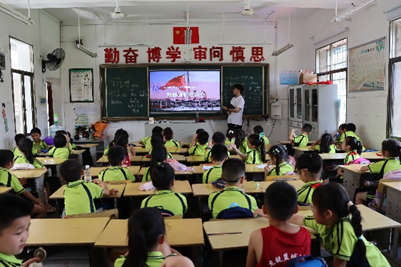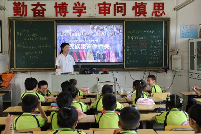 在蒸湘区实验小学活动现场,志愿者走进班级,以《民族服饰件件美》和《祖国旗帜在我心》为主题,带来了特色课程分享。志愿者们向小朋友展示了不同民族传统服饰的独特魅力,讲述各个民族团结的故事,引导青少年们认识到中华民族多元一体的历史渊源和现实意义,将铸牢中华民族共同体意识扎根在青少年心中;通过视频与讲故事相结合,让学生认识国旗、走进党旗,激发他们的浓浓爱国情,红色影片片段中激情故事与历史场景,让同学们感受到祖国的伟大和民族的团结,对祖国的历史有了更深刻的理解与体会。